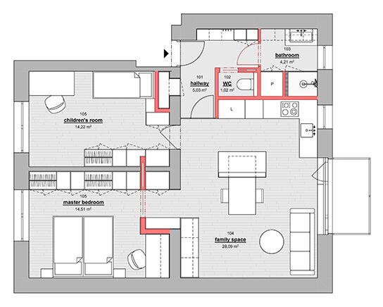 Renovating an apartment in a city renowned for its iconic functionalist architecture gave the architect and investor an opportunity not only to pay homage to this heritage but also to experiment – just as architects and urban planners did during Zlín’s rise in the early 20th century.