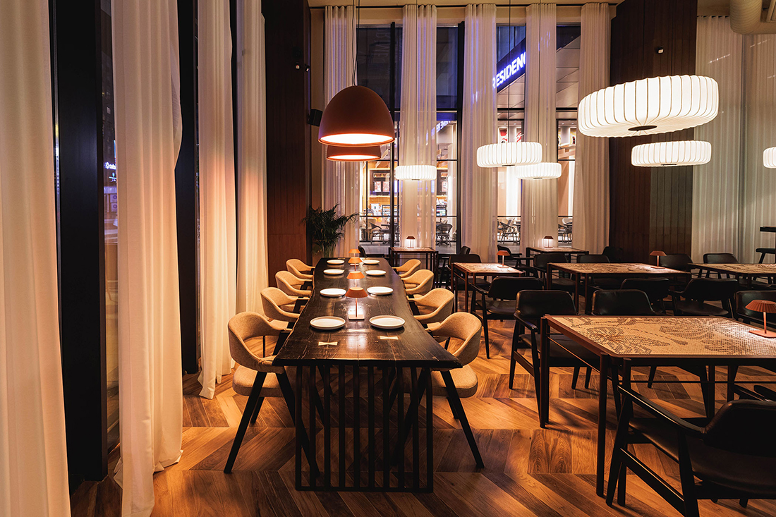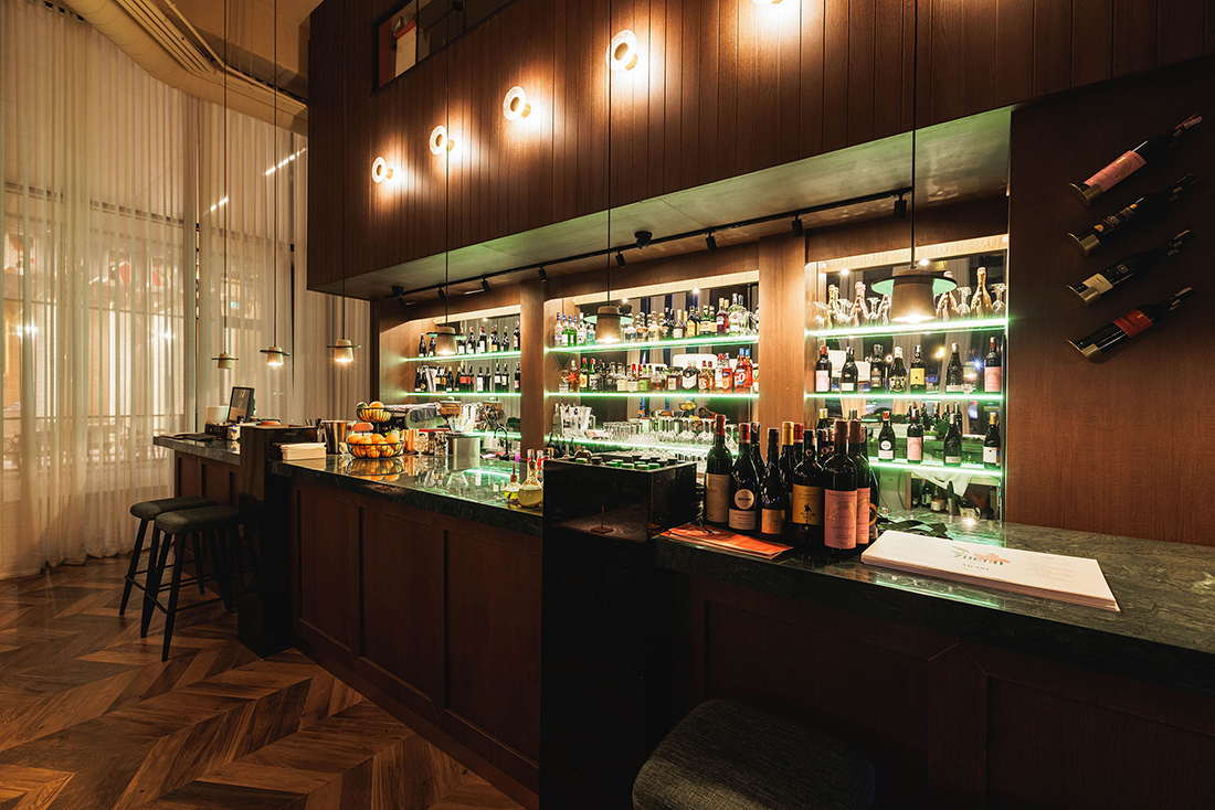 This Italian restaurant blends urban sophistication with everyday warmth, embodying the smart, casual style in a calm and elegant setting. The interior architecture reflects the simplicity and authenticity of Italian cuisine through commonly used materials like wood, stone, and metal. The space is carefully arranged to offer comfort and tranquility, with tables for couples or groups, softened lighting, and an atmosphere that invites quiet conversation and memorable dining experiences. Here, every detail is thoughtfully designed to create harmony between the setting, the food, and the guest. The design is focused to add to the food and dining experience instead of being the star.