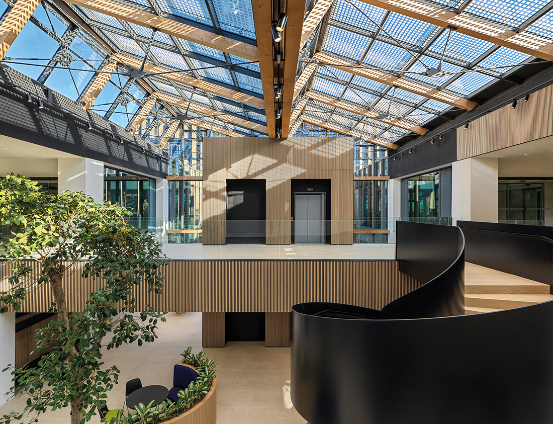 Zucchetti Village is transforming the My Lodi shopping center into the headquarters of the software company Zucchetti, with 1,500 workstations. The project, designed by Lombardini22, stands out for its use of glulam structures – a material that enables significant CO2 savings throughout the building’s lifecycle.
